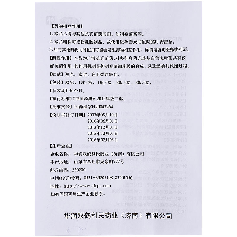 1. 本品不得与其他抗真菌药同用,如制霉菌素等。 2. 本品辅料可损伤乳胶制品,故使用避孕套或阴道隔膜时需注意。 3. 如与其他药物同时使用可能会发生药物相互作用,详情请咨询医师或药师。