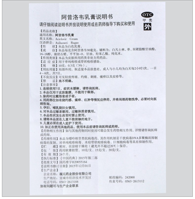 阿昔洛韦乳膏用法和用量