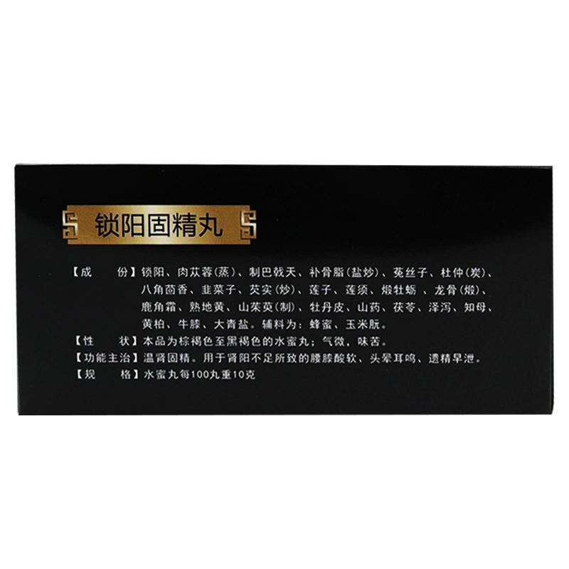 锁阳固精丸可以自己购买吗,该药并不属于处方药,购买药物时不需要携带医生的处方就可以买到,有需要的患者可以直接去当地的药店购买就可以了,也可以在网上或者医院里面购买,都是能够买到此药的。但是为了患者的病情能尽快恢复,建议患者应该就医后,按照医生的要求按量用药,这样可以更快的恢复。锁阳固精丸由锁阳、肉苁蓉、巴戟天、补骨脂、菟丝子、杜仲、八角茴香、莲子、山药、芡...