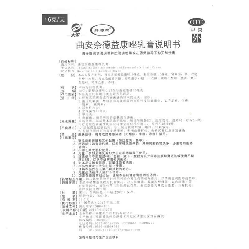曲安奈德益康唑乳膏是一种复方的药膏,根据名字可知该药物由两种成分组成,是曲安奈德和益康唑,它性状呈乳膏,外涂于患处,用法用量比较好掌握,临床常用来治疗细菌导致的皮肤炎症或者湿疹。该药物中所含的两种药物之一曲安奈德,属于糖皮质类固醇激素,具有抗炎、止痒和抗过敏等显著的作用,而硝酸益康唑是属于唑类抗真菌药,具有对皮肤癣菌、霉菌和酵母菌,包括念珠菌、某些革兰氏阳...