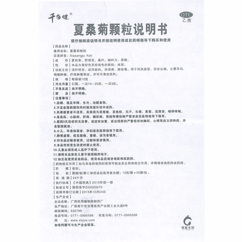 李亚芹风湿免疫科 | 主任医师凌源市中心医院医生讲解:夏桑菊颗粒的主要成分为夏枯草、野菊花、桑叶。夏桑菊颗粒的主要功效为广谱抗病毒杀菌消炎,它能迅速缓解感冒引起的发热、咽痛、咳嗽等症状,并能调节免疫增强机体抗病康复能力,常用剂量为一次十到二十克,一日三次。在夏桑菊颗粒的说明书上标识的注意事项为,小儿、年老体弱者、孕妇应在医师指导下服用,由于孕妇的个体差异不...